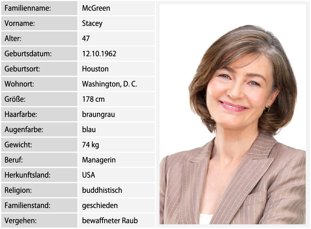 Nun lautet Ihr Auftrag, sich Informationen aus einem Steckbrief zu merken.