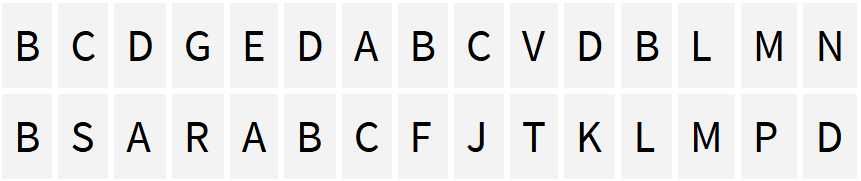 Bitte markieren Sie – Reihe für Reihe – alle Buchstabenkombinationen, die aus drei alphabetisch benachbarten Buchstaben in aufsteigender Folge bestehen. Dabei gilt: Ein Buchstabe darf nur einer Kombination zugerechnet werden.