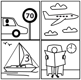 Sie sehen vier Abbildungen. Bitte prägen Sie sich die dargestellten Szenen möglichst detailliert ein, damit Sie dazu anschließend einige Fragen beantworten können.
